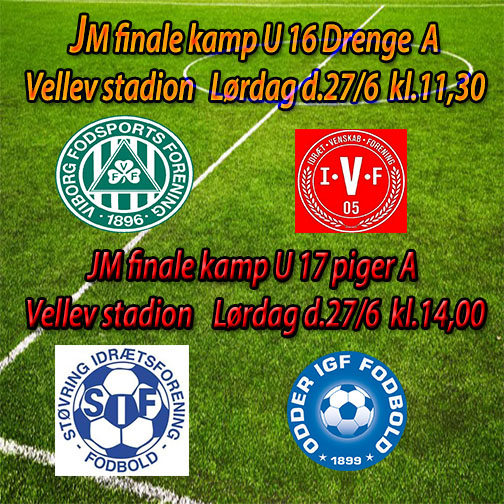 Rundt om i Jylland spilles der i øjeblikket finale kampe i diverse ungdoms rækker om det jyske mesterskab og Vellev Stadion er udvalgt til 2 af disse kampe på lørdag.Viborg FF U 16 Drenge A møder IVF,Århus kl.11,30.